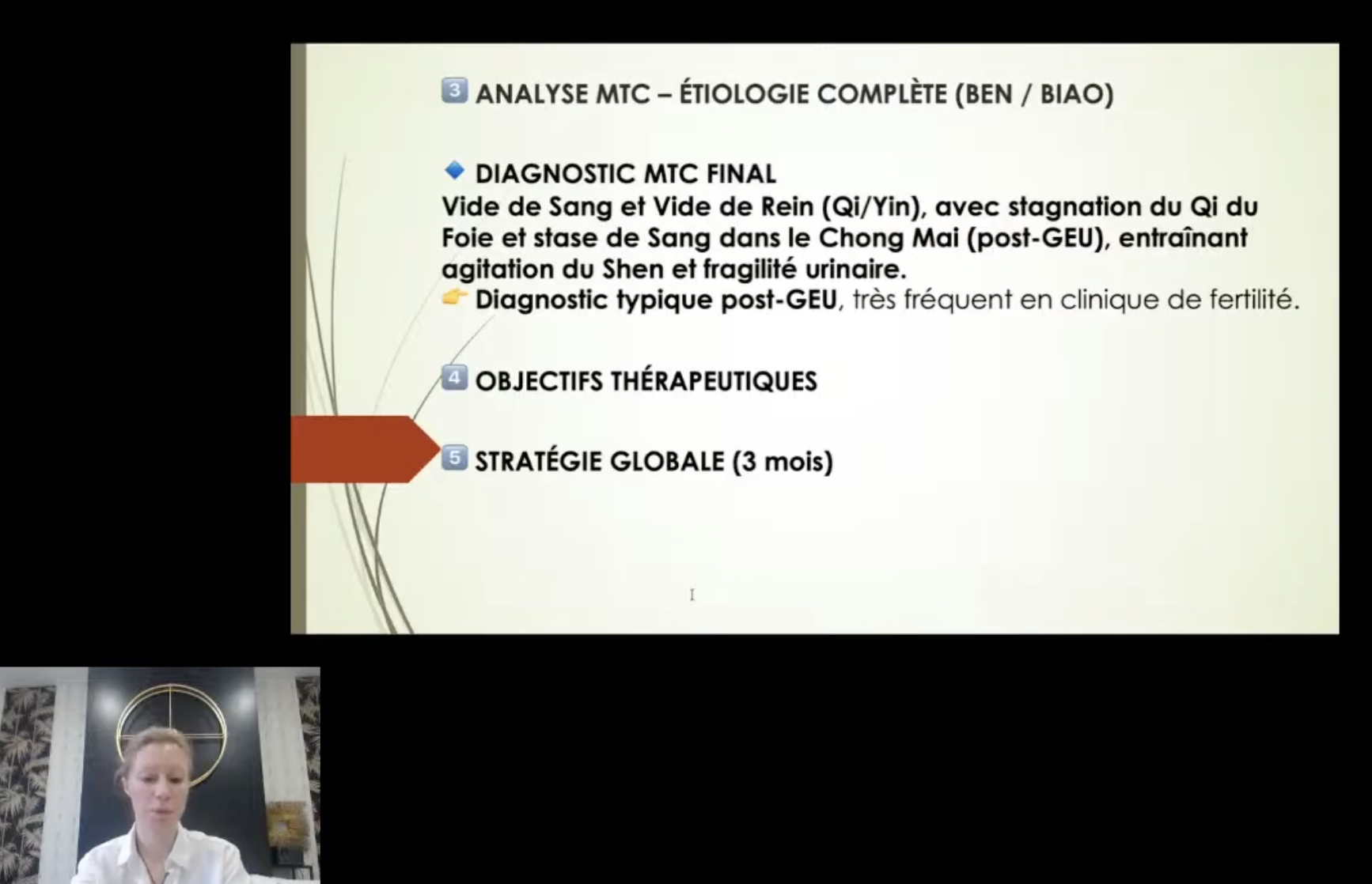 Le jour du tutorat collectif, vos cas patients seront étudiés en détail, avec le diagnostic, les points d'acupuncture, la formule de pharmacopée adaptée (issue des cours FSG)